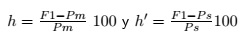 El porcentaje de heterosis de las cruzas se estimó con respecto al progenitor medio (h) y al progenitor superior (h') considerando el comportamiento de las características evaluadas de las cruzas y el comportamiento promedio de las líneas macho y hembra que intervienen en las cruzas, con las siguientes fórmulas: