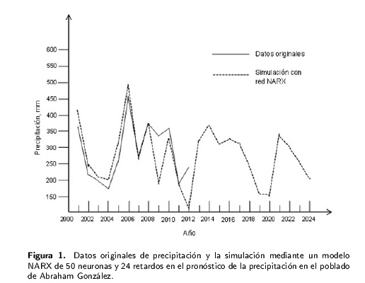 En el estado de Chihuahua son pocos los estudios que se han desarrollado para predecir el comportamiento de la precipitación. Dentro de los cuales se encuentra el trabajo de Núñez-López et al. (2014) quienes encontraron que en la cuenca del río Conchos, de junio a septiembre, se presenta la máxima precipitación en las zonas de mayor altitud, la cual decrece con la altitud del relieve. En otro estudio Núñez-López et al. (2007) caracterizaron los principales eventos de sequía meteorológica que afectaron al estado de Chihuahua de 1970 a 2004. Por lo anterior, el objetivo del presente estudio, fue aplicar los modelos en series de tiempo ARIMA y de redes neuronales NARX para analizar los patrones de precipitación pluvial, observar las ventajas y desventajas de cada método, para predecir el próximo evento de sequía y su permanencia en la región noroeste del estado de Chihuahua.