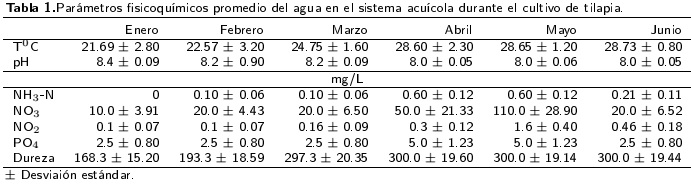 Los intervalos de temperatura registrados durante el estudio permanecieron dentro de los valores de tolerancia para el cultivo de tilapia. Sin embargo, al inicio del estudio fueron menores al valor óptimo recomendado para su crecimiento. A partir de abril, se tuvo una temperatura promedio superior a 28.6 °C, lo que permitió un incremento del peso, obteniendo un peso promedio final de 149.68 g y una supervivencia de 78.88 %. La concentración de oxígeno disminuyó conforme se incrementó la temperatura y la biomasa. En enero, se registraron valores promedio de oxígeno disuelto de 6.76 ± 0.23 mg L-1 y de abril a junio, se tuvo una concentración de 5.26 ± 0.32 mg L-1 (Tabla 1).