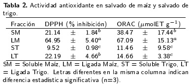 Palabras clave: Ácidos fenólicos, DPPH, fenoles totales, ORAC, Salvado maíz, salvado trigo