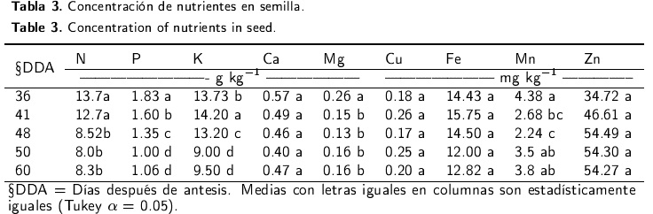 Concentración nutrimental en semilla