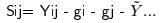 Donde: gi, gj y Sij son los efectos de ACG y ACE, respectivamente para los i-machos, las j-hembras y sus i j cruzas; son las medias de los machos y las hembras, Yij es el valor de la cruza