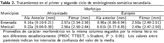 Con los valores promedio de longitud del ala y del fémur de cada colonia se calculó la probabilidad de africanización, usando el coeficiente del procedimiento discriminatorio FABIS (Sylvester y Rinderer 1987). Las colonias con coeficiente igual o menor de -0.56 fueron consideradas africanizadas con una probabilidad de 0.99, en caso contrario se consideraron europeas. Las frecuencias de los morfotipos africanizados y europeos en las colonias manejadas y enjambres, se analizaron mediante una prueba de Chi-cuadrada con el procedimiento PROC FREQ de SAS (SAS 2001), para determinar si existen diferencias entre estas, en las localidades estudiadas. Las medias de la longitud de los caracteres morfométricos de las colonias africanizadas y europeas se compararon entre localidades mediante la prueba de t-Student con el procedimiento PROC TTEST de SAS a una significancia del 0.05 (SAS 2001).