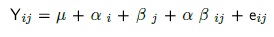 Dónde: Yij representa el resultado de un juez i para la muestra j,μ es la media general, αi es el efecto juez (consenso en el uso de la escala), βj es efecto de la muestra (discriminación), αβij es el efecto de la interacción muestra por juez (clasificación de las hamburguesas sobre la escala de intensidad) con un α= 0.05 y eij es el término error del modelo. Se consideró como efecto aleatorio el factor juez mientras que el factor muestra como fijo (Tomic et al. 2010, Ares et al. 2011).