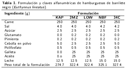 Para la elaboración de las hamburguesas se utilizó barrilete negro (Euthynnus lineatus), el cual tiene un alto contenido de hierro y proteínas. Además de que tiene poca demanda por parte del consumidor, por lo que se le quiere dar un valor agregado (Vidal et al. 2013).